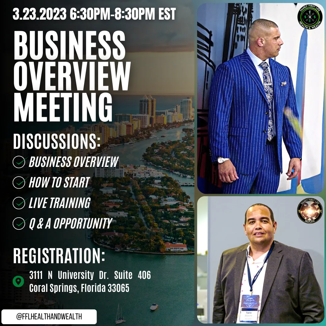 Join us at the BUSINESS OVERVIEW MEETING in Coral Springs, Florida